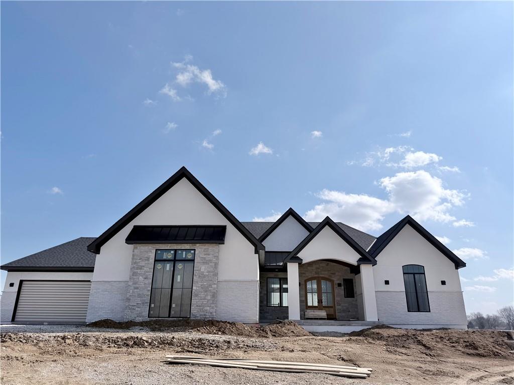 Nearly Complete New Construction Reverse 1.5 Story on an estate lot in unincorporated Platte County. 4 Bedrooms, 4 Full & 2 Half Baths, 4-Car Garage. Double-door entry with feature lighting opens to living room with linear fireplace and double sliders to covered deck. Designer kitchen with stained & painted cabinets, oversized island, dining area with statement lighting, and butler’s pantry. Luxurious primary suite with tray ceiling, chandelier, spa bath featuring freestanding tub, zero-entry shower w/ dual heads, abundant vanity storage, connects to laundry and large walk-in closet. Finished lower level includes back bar, Beds 3 & 4 w/ private baths and walk-in closets, plus suspended garage w/ roll-up door for exceptional storage all on an Estate Sized Lot. Estimated Spring 2026 Completion.